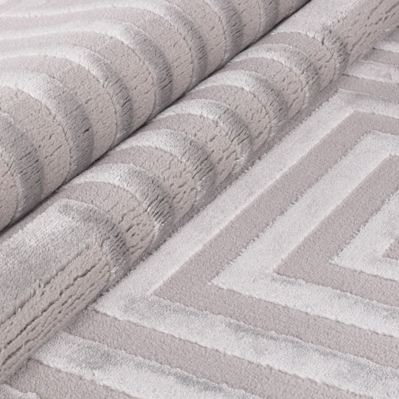 Geometryczny wzór tego dywanu łączy się z efektem 3D, nadając mu trójwymiarową głębię i niepowtarzalny charakter. Posiadanie certyfikatu Oeko Tex Standard 100 potwierdza, że wszystkie użyte materiały są bezpieczne dla zdrowia.