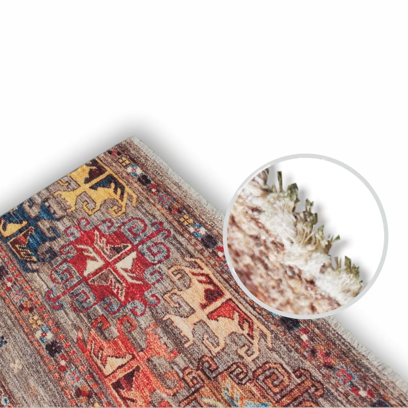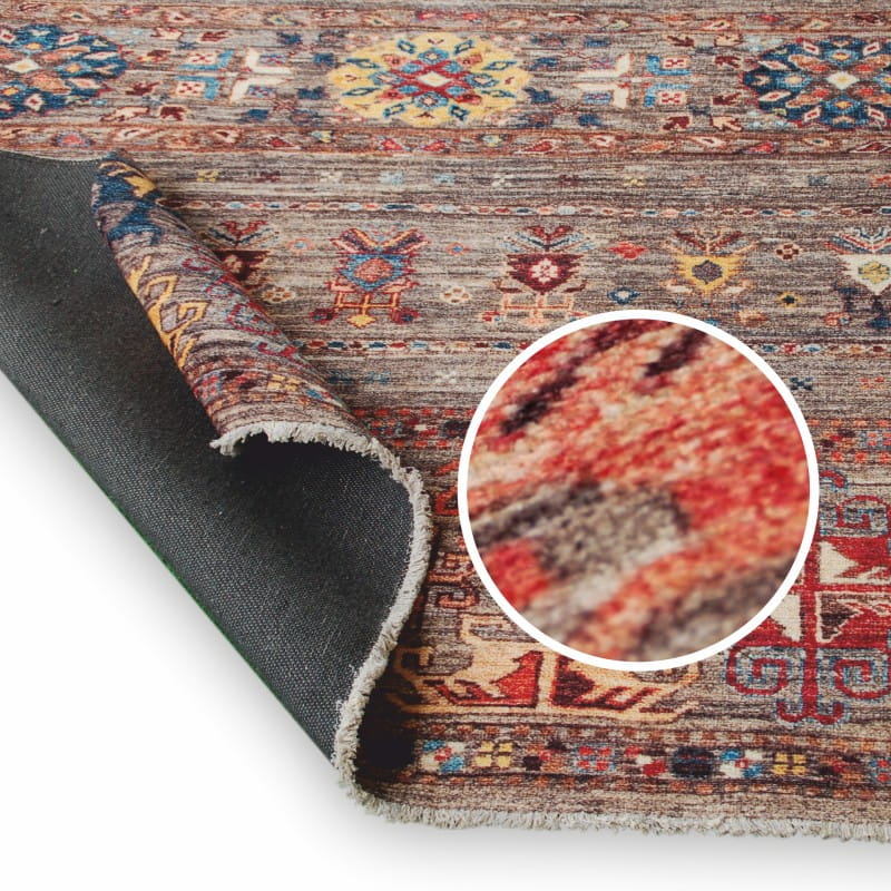 Bogata i intensywna kolorystyka tego dywanu sprawia, że stanie się on centralnym punktem każdego pomieszczenia, nadając mu charakterystyczny wyraz. Oryginalny wzór w stylu boho połączony z wieloma kolorami z pewnością przyciągnie uwagę Twoich gości i stworzy przytulną atmosferę w Twoim wnętrzu.