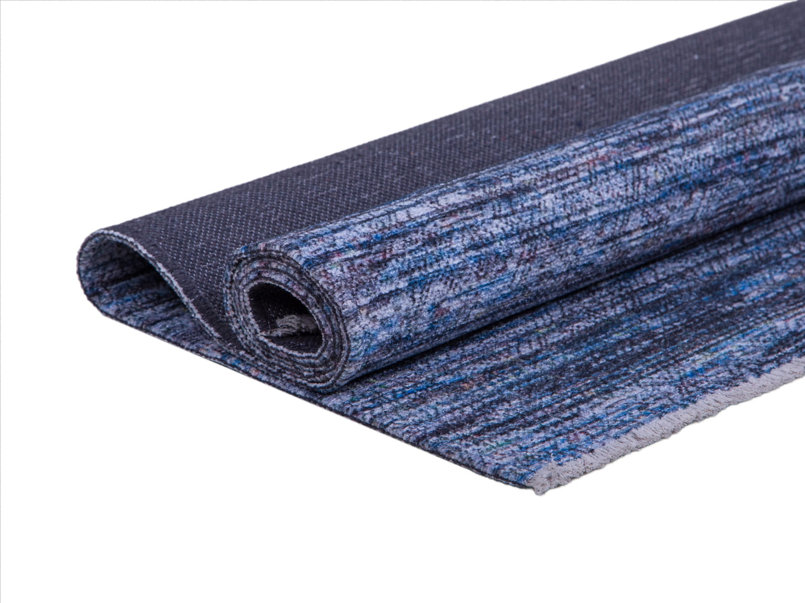 Dywan bawełniany Pescara multikolor" to wielokolorowy dywan o runie wykonanym z bawełny i poliestru, co czyni go miłym i miękkim w dotyku. Kolorystyka tego dywanu to odcienie szarości, brązu, grafitu i niebieskiego połączone w abstrakcyjnym wzorze, tworząc bogatą paletę barw.