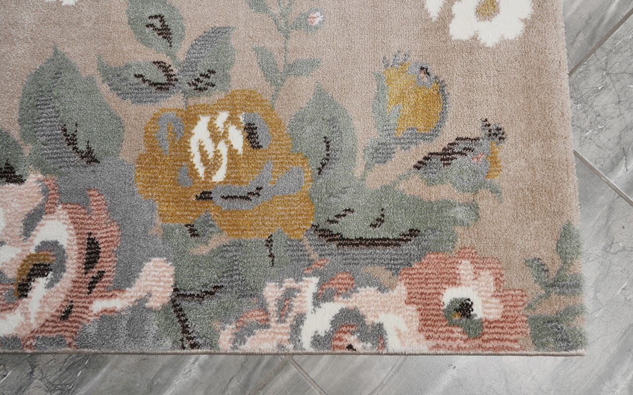Dywan nowoczesny Pleasure Kwiaty beżowy 80 cm x 150 cm