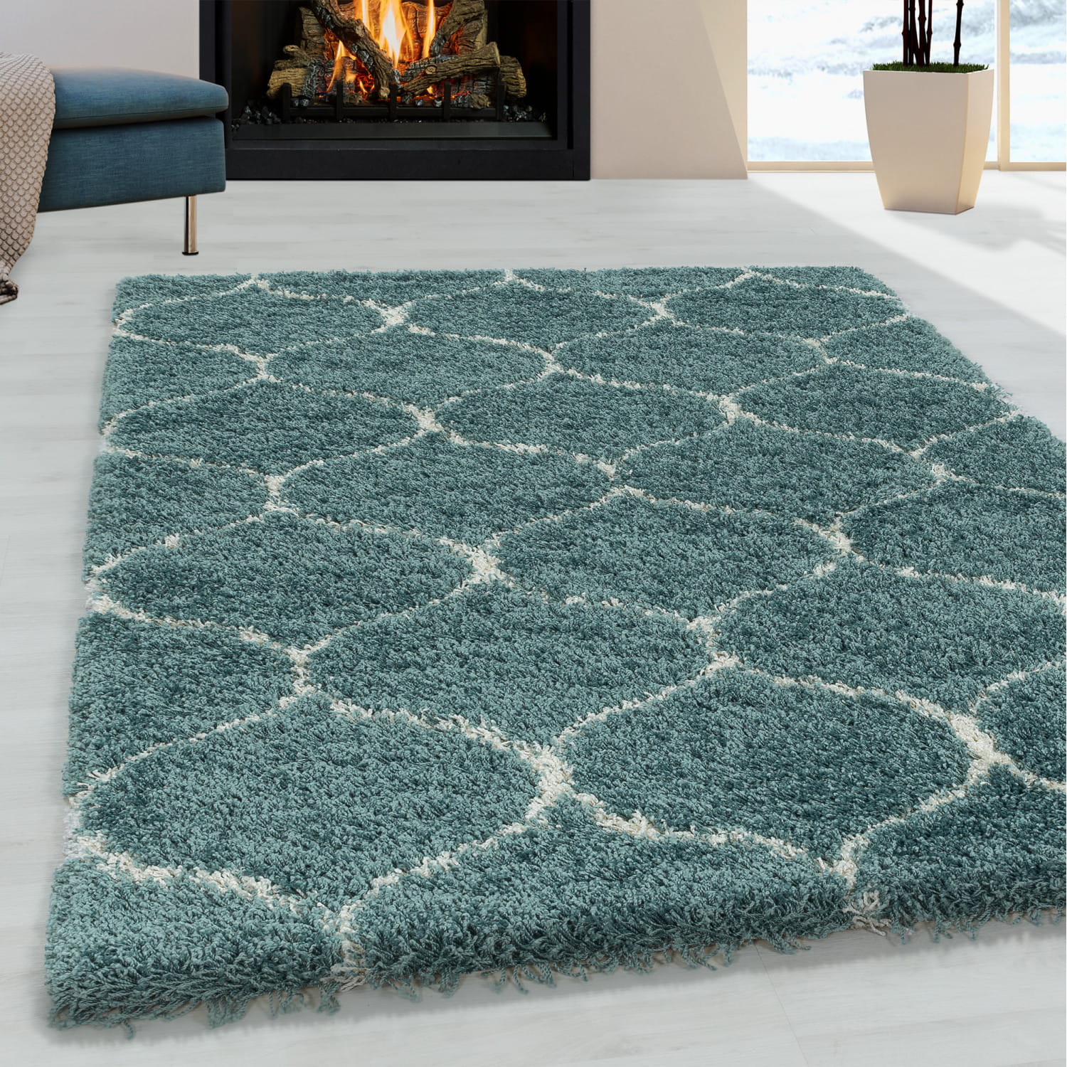 Dywan shaggy Salsa koniczyna niebieski 280 cm x 370 cm