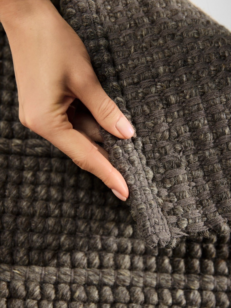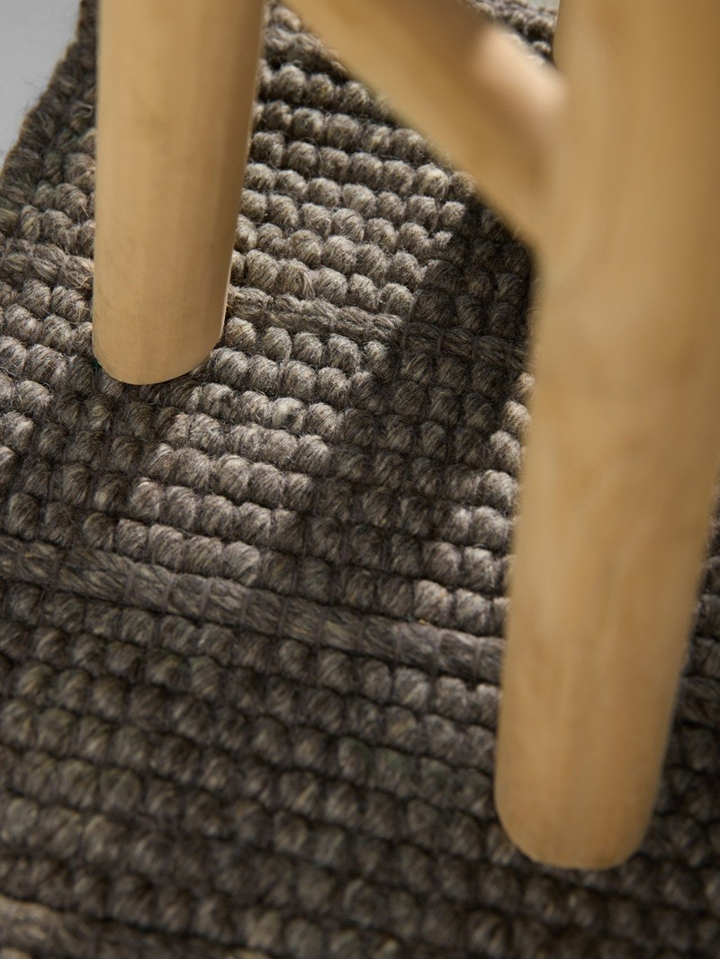 Brązowo-szara kolorystyka łączy ciepło naturalnych odcieni brązu z elegancją stonowanej szarości, tworząc harmonijny i spokojny efekt, który doskonale pasuje do wielu stylów aranżacji wnętrz. Subtelne przenikanie się brązowych i szarych tonów podkreśla strukturę wełnianego splotu, nadając powierzchni dywanu głębię i naturalny charakter.