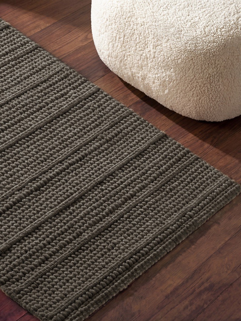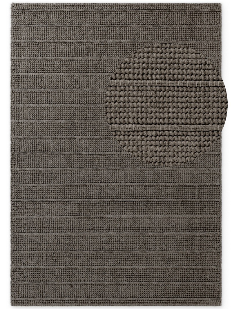 Brązowo-szara kolorystyka łączy ciepło naturalnych odcieni brązu z elegancją stonowanej szarości, tworząc harmonijny i spokojny efekt, który doskonale pasuje do wielu stylów aranżacji wnętrz. Subtelne przenikanie się brązowych i szarych tonów podkreśla strukturę wełnianego splotu, nadając powierzchni dywanu głębię i naturalny charakter.