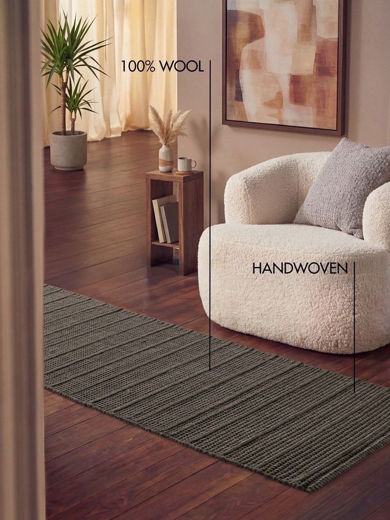 Dywan wełniany Camden Premium Ted Baker ręcznie tkany w brązowo-szarym kolorze (80 cm x 250 cm) to elegancki element, który łączy nowoczesny design z wysoką jakością. Projekt autorstwa brytyjskiego projektanta Teda Bakera wyróżnia się subtelnym, strukturalnym wzorem, stworzonym dzięki zastosowaniu zróżnicowanych technik tkania naturalnej wełny.