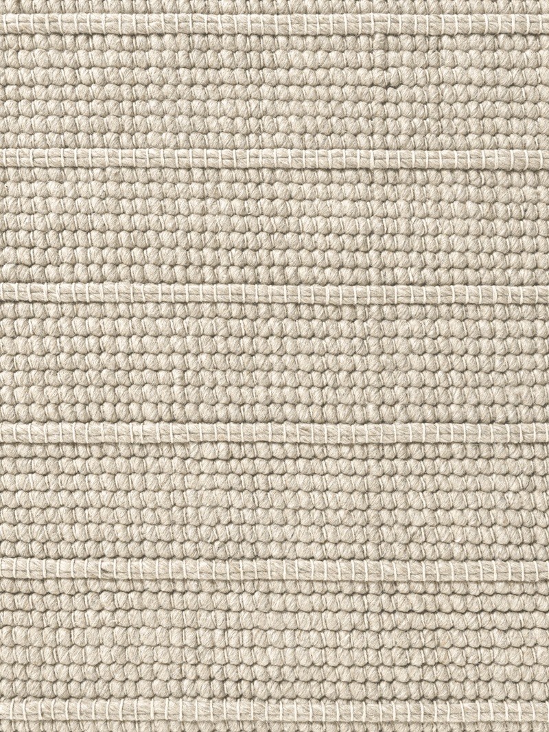 Zamiast klasycznego nadruku czy ornamentu, dekoracyjny efekt osiągnięto poprzez grę faktur i gęstości splotu, co nadaje dywanowi elegancki i nowoczesny charakter. Powierzchnia dywanu składa się z regularnych poziomych pasów, w których naprzemiennie zastosowano dwa rodzaje struktury: