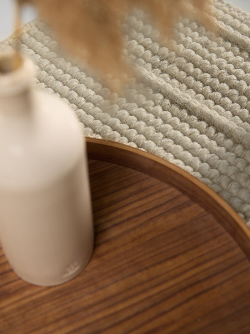 Wykonany z wysokiej jakości naturalnej wełny, dywan jest miękki, sprężysty i niezwykle trwały. Naturalne włókna zapewniają dobrą izolację termiczną, poprawiają akustykę pomieszczenia oraz są antystatyczne i mniej podatne na zabrudzenia, co ułatwia codzienną pielęgnację.