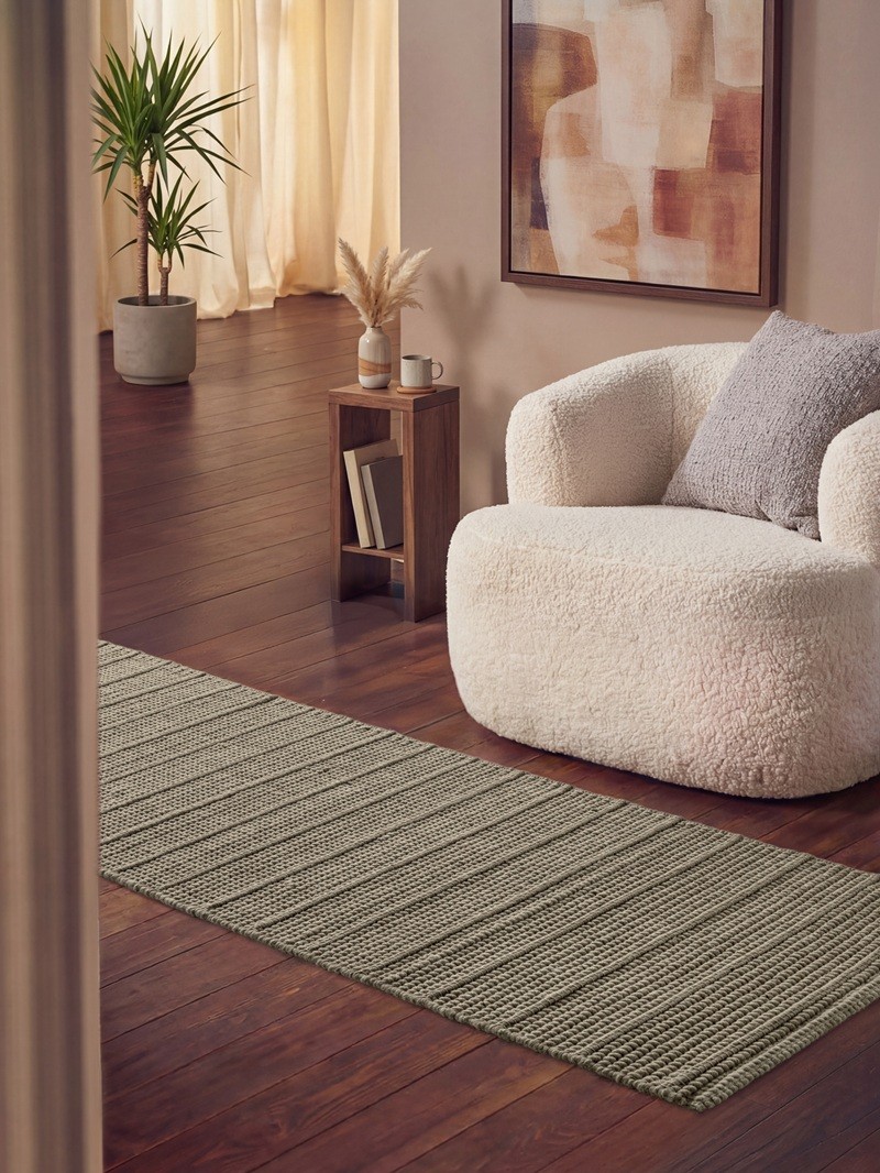 - Pleciona struktura – z większymi, wyraźnymi oczkami przędzy, co nadaje dywanowi wypukły efekt.
