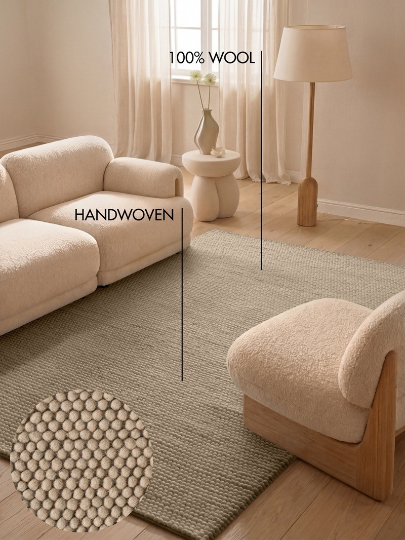 Wykonany z wysokiej jakości naturalnej wełny, dywan jest miękki, sprężysty i wyjątkowo trwały. Naturalne włókna zapewniają doskonałą izolację termiczną, poprawiają akustykę pomieszczenia oraz tworzą komfortową powierzchnię pod stopami. Staranna technika tkania podkreśla wysoką jakość wykonania oraz elegancką strukturę runa.